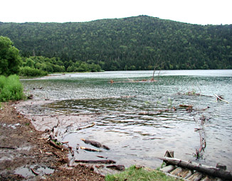 ぐるりと湖岸を目で追っても、他の水際へ向かえそうな雰囲気はなく、もしそれが可能なら、ここから見ている僕に人影が見えていることだろう。